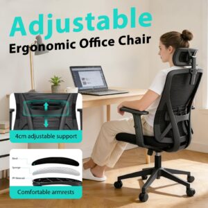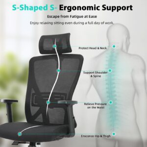 Ergonomic S-Curve Backrest for All-Day Comfort:S-shaped backrest with 5cm adjustable lumbar support fits your spine perfectly, relieving back pain from long hours at work. Ideal for home office, study & workplace use.