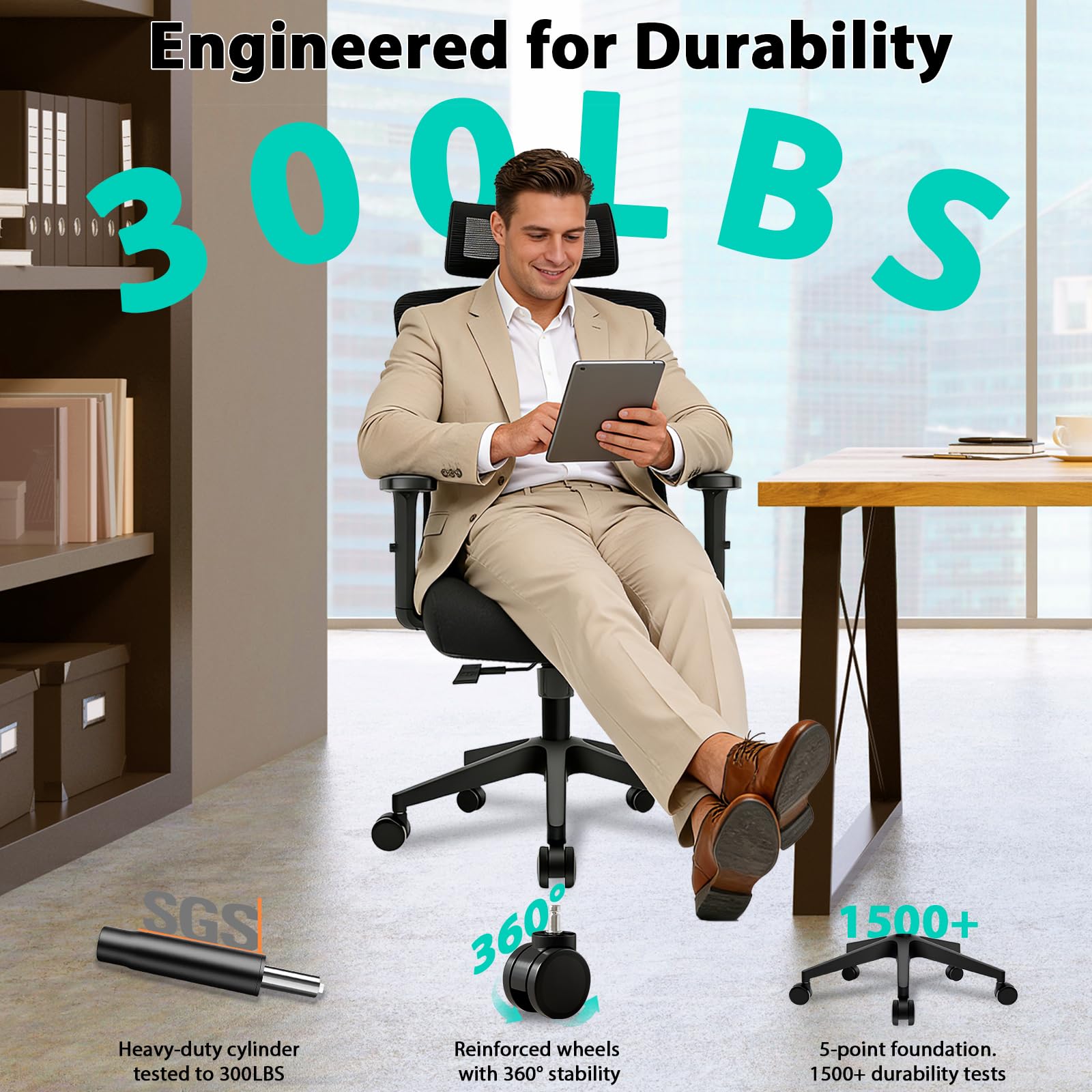 Stable, Safe & QuietReinforced base supports up to 150kg. certified gas lift for safety. Silent 360° casters roll smoothly without scratching floors or disturbing others.