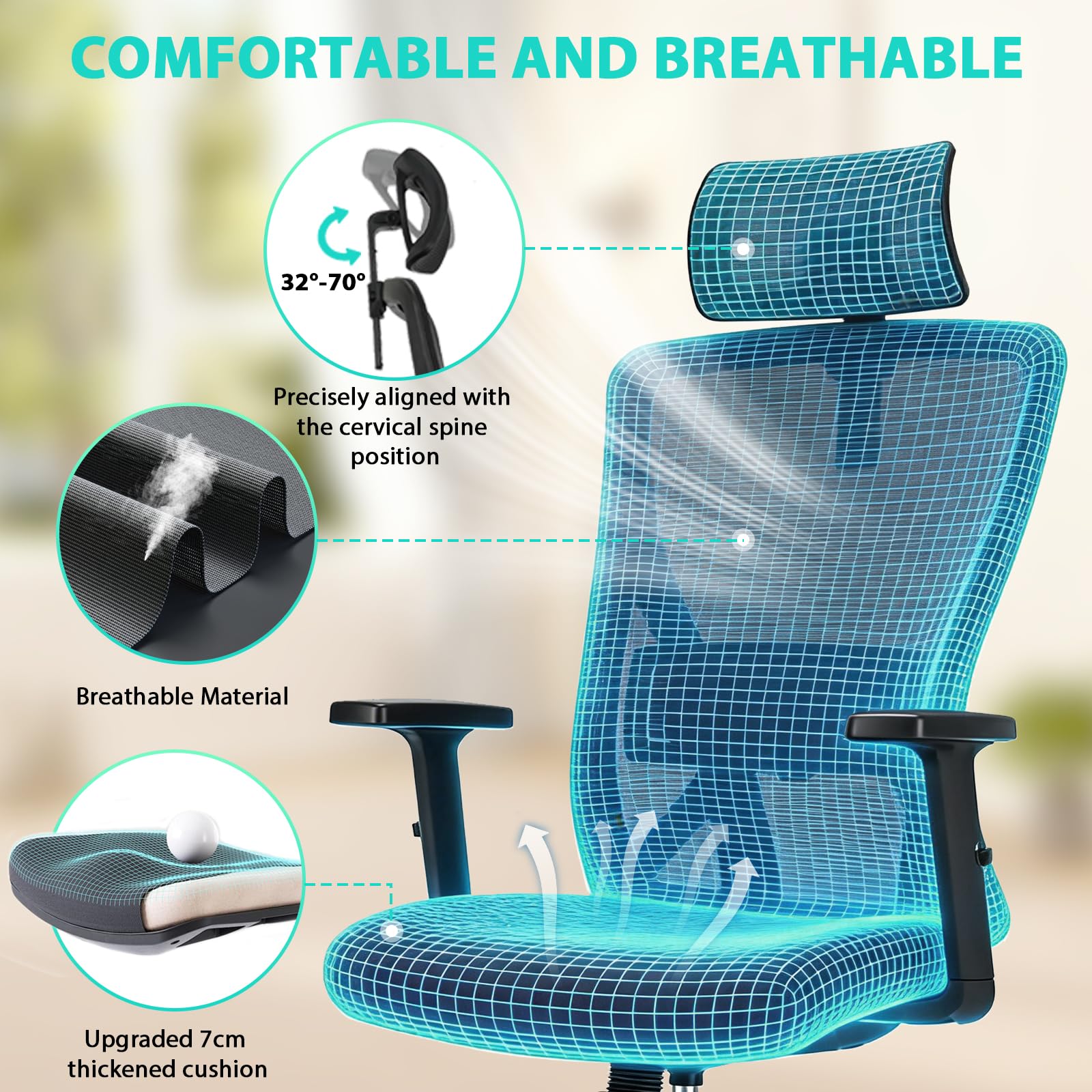 7cm Thick Cushion & Breathable Mesh:W-shaped, breathable 7cm foam seat cushion distributes pressure on hips & thighs. High-elastic mesh back keeps you cool & dry even during long sitting sessions.
